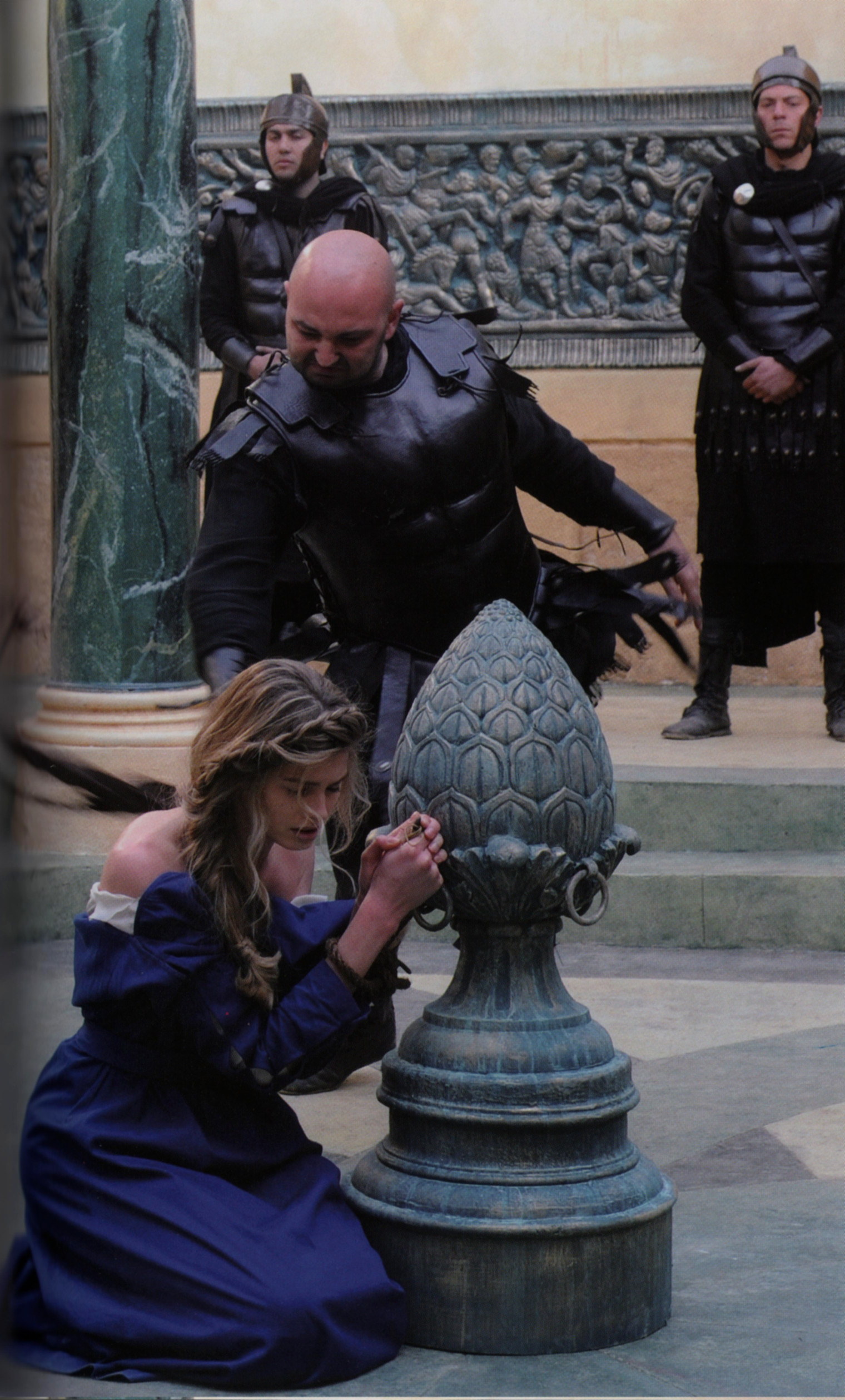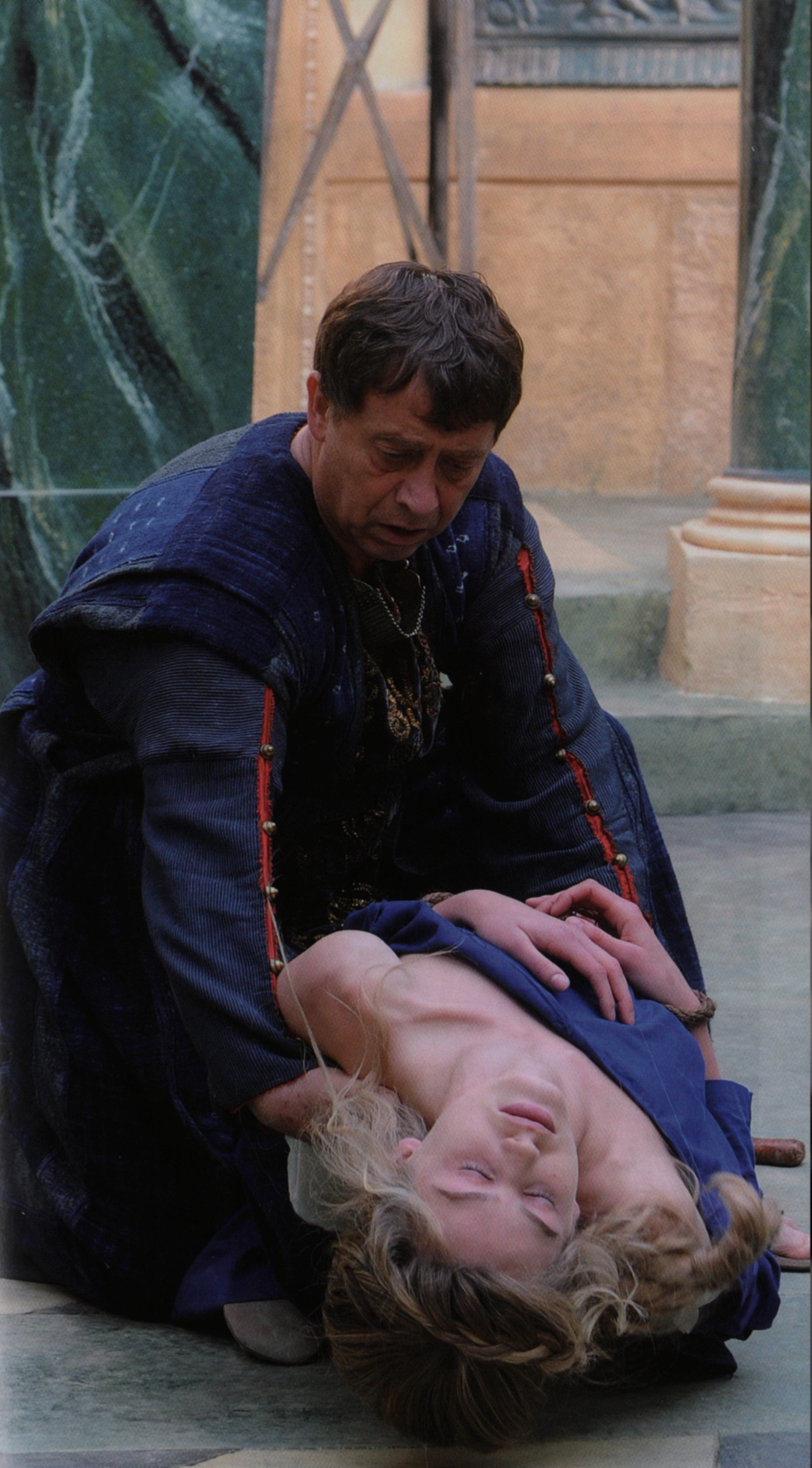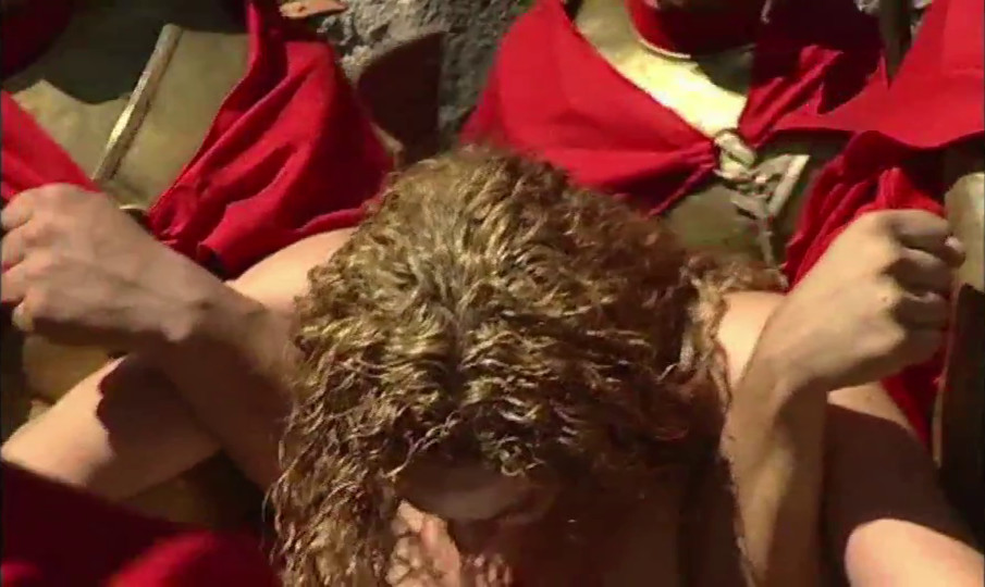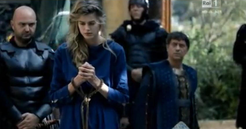 Barbara is whipped in public, but refuses to give up her faith. When the governor threatens to make her a prostitute and to give her to his soldiers, her father steps in and kills her—in contrast to the legend, not in a rage, but to protect his and her honour.